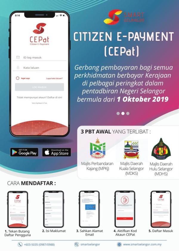 SHAH ALAM, 24 OKT: Aplikasi tanpa tunai ‘Citizen E-Payment Platform’ (CEPaT) bakal menyediakan 25 perkhidmatan baharu kepada orang ramai serta 30 kaedah pembayaran dalam talian.