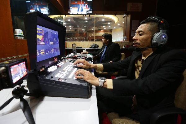 Petugas Media Selangor sedang melakukan kerja belakang tabir siaran langsung sesi perbahasan dalam sidang Dewan Negeri Selangor, Shah Alam pada 3 November 2020. Foto HAFIZ OTHMAN/SELANGORKINI