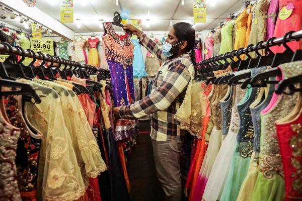 Sakthivell Perumalsamy, 47, memilih pakaian untuk anak perempuannya bagi sambutan Deepavali di Sri Rasi Silk Center Sdn Bhd, Klang pada 5 November 2020. Foto FIKRI YUSOF/SELANGORKINI
