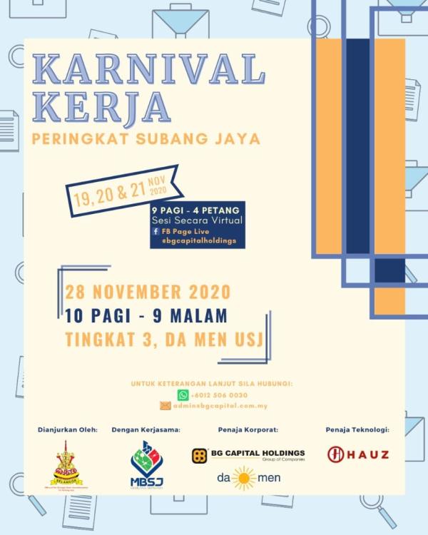 SHAH ALAM, 6 NOV: Pejabat Dewan Undangan Negeri (DUN) Subang Jaya bakal menganjurkan karnival kerjaya membabitkan penyertaan lebih 100 syarikat kecil dan sederhana (IKS) serta organisasi.