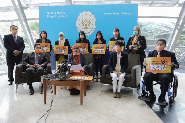 SHAH ALAM, 9 NOV: Wakil rakyat di sidang Dewan Negeri Selangor (DNS) hari ini mengangkat plakad 'Hentikan Keganasan, Hormat Wanita' sebagai simbolik sokongan Kempen Hentikan Keganasan Terhadap Wanita 2020.