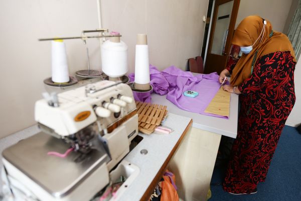 Salamiah Ahmed, 41, sedang melakukan proses pemotongan kain saree bagi membuat baju kurung di Haninakareef Collection, Bandar Baru Bangi pada 9 November 2020. Foto HAFIZ OTHMAN/SELANGORKINI