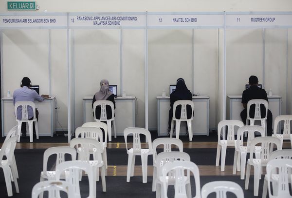 Peserta sedang menghadiri sesi temuduga secara maya ketika program Jelajah Selangor Bekerja 2020 di Dewan MDKS Saujana Utama, Sungai Buloh pada 22 November 2020. Foto HAFIZ OTHMAN/SELANGORKINI