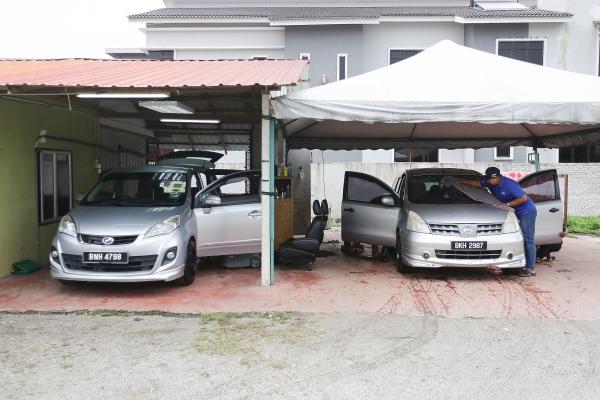 Ahmad Humini membersihkan kenderaan pelanggan di pusat cuci keretanya Legacy Cleaner. Foto SELANGORKINI[/caption]