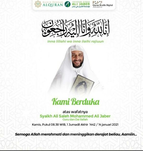 Menurut hantaran Instagram yayasan.syekhalijaber, pendakwah bebas yang popular di aplikasi Instagram, YouTube dan TikTok serta sering muncul di pelbagai stesen televisyen tempatan itu meninggal dunia pada 8.30 pagi tadi.