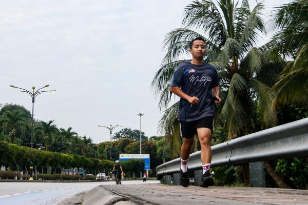 Seorang lelaki berjoging bersendirian di Seksyen 4, Shah Alam pada 16 Januari 2021. Aktiviti riadah dibenarkan terhad kepada dua orang pada satu-satu masa dengan mengamalkan penjarakan fizikal dan dilakukan di kawasan kejiranan sepanjang tempoh Perintah Kawalan Pergerakan. Foto ASRI SAPFIE/SELANGORKINI