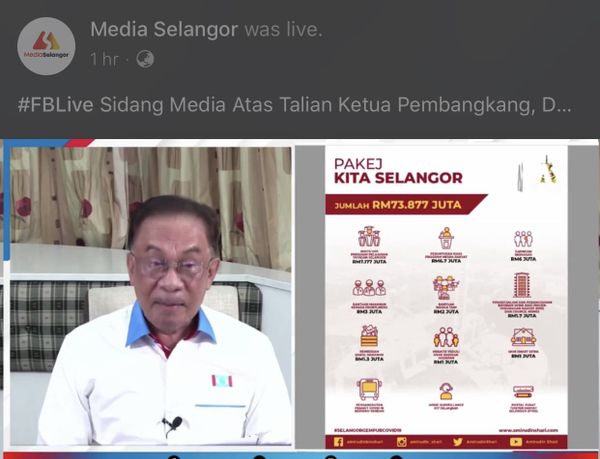 "Apa masalah rakyat? Selangor berikan bantuan makanan kepada petugas barisan hadapan, bakul makanan kepada rakyat, membatalkan pinjaman pelajaran Yayasan Selangor dan beberapa inisiatif lain," katanya menerusi siaran langsung di Facebook.