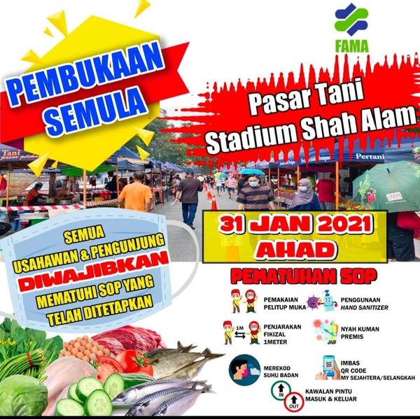Pada 12 Januari, Menteri Kanan (Keselamatan), Datuk Seri Ismail Sabri Yaakob berkata pasar harian dan pasar tani masih boleh beroperasi sepanjang Perintah Kawalan Pergerakan (PKP).