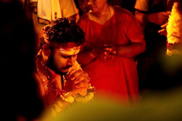 Penganut Hindu akan memecahkan sebiji kelapa untuk membersihkan dosa yang lazimnya dijalankan sebelum upacara sembahyang[/caption]