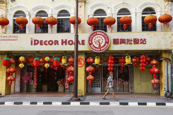 Seorang lelaki melalui sebuah kedai barangan hiasan sambutan Tahun Baru Cina yang agak lengang dengan kehadiran pengunjung di Jalan Sultan, Kuala Lumpur pada 1 Februari 2021. Berikutan Perintah Kawalan Pergerakan kali kedua atau PKP 2.0. Foto HAFIZ OTHMAN/SELANGORKINI