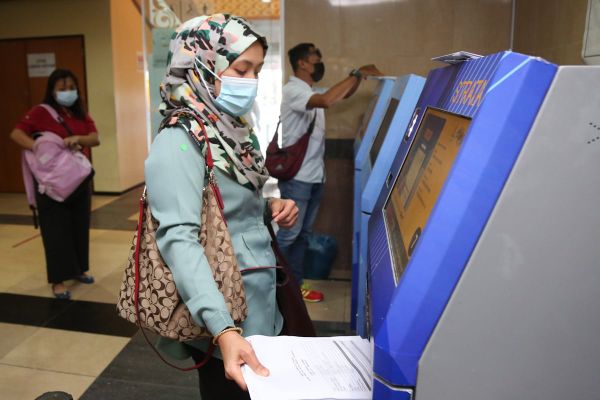 Peguam, Rosnita Yaakob, 43, menggunakan perkhidmatan kios layan diri Smartbox bagi urusan penyerahan dokumen hak milik strata serta tanah di Pejabat Tanah dan Galian Selangor (PTGS) Bangunan SUK pada 2 Februari 2021. Foto REMY ARIFIN/SELANGORKINI