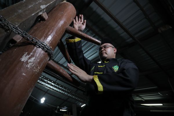 Ahmad Suyuthi Basharuddin,31 berlatih ketangkasan dengan menggunakan alat latihan orang kayu di gelanggang Silat Gayang Lima, Taman Desa Keramat pada 5 Februari 2021. Foto FIKRI YUSOF/SELANGORKINI