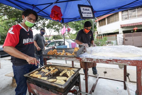 Peniaga, Mohd Rahmat Mad Saleh, 30 sedang mengoreng cakoi ketika tinjauan Media Selangor di Seri Rampai, Kuala Lumpur pada 6 Februari 2021. Foto HAFIZ OTHMAN/SELANGORKINI