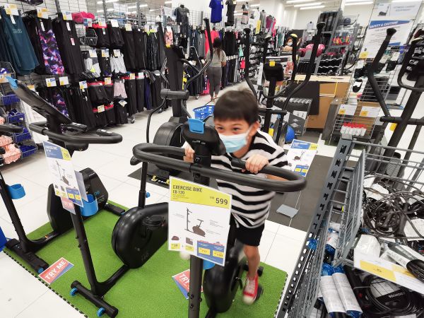 Seorang kanak - kanak mencuba peralatan sukan ketika mengunjung ke kedai peralatan sukan di Sri Damansara, Petaling Jaya pada 15 Februari 2021. Foto HAFIZ OTHMAN/SELANGORKINI