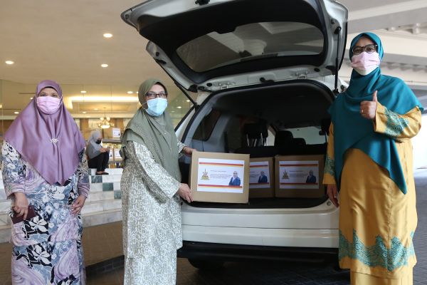 EXCO Kesihatan Awam, Perpaduan dan Pembangunan Wanita dan Keluarga, Dr Siti Mariah Mahmud menyerahkan kit pembasmi Covid-19 secara pandu lalu kepada wakil taska seluruh Selangor di Foyer Jubli Perak, Bangunan Sultan Idris Shah, Shah Alam pada 23 Februari 2021. Foto REMY ARIFIN/SELANGORKINI