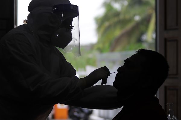 Petugas kesihatan membuat ujian calitan kepada peserta Saringan Komuniti Covid-19 secara percuma di Dewan Bestari Jaya, Kuala Selangor pada 21 Mac 2021. Foto FIKRI YUSOF/SELANGORKINI