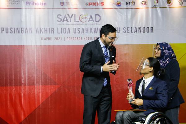 DYTM Raja Muda Selangor Tengku Amir Shah berkenan menyantuni naib juara Liga Usahawan OKU Selangor (SAY LEAD) Zaim Zazami Ibrahim, 35, di Hotel Concorde, Kuala Lumpur pada 6 April 2021. Foto ASRI SAPFIE/SELANGORKINI
