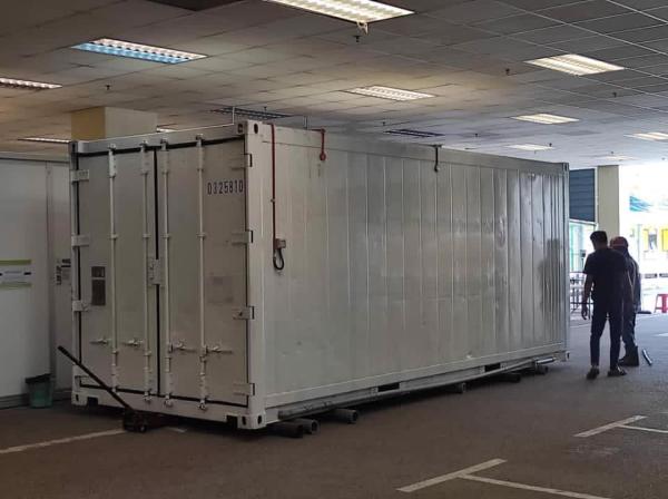 KUALA LUMPUR, 17 MEI: Jabatan Perubatan Forensik Hospital Sungai Buloh terpaksa menyediakan kontena khas sebagai tambahan tempat penyimpanan jenazah atau mayat mangsa Covid-19.