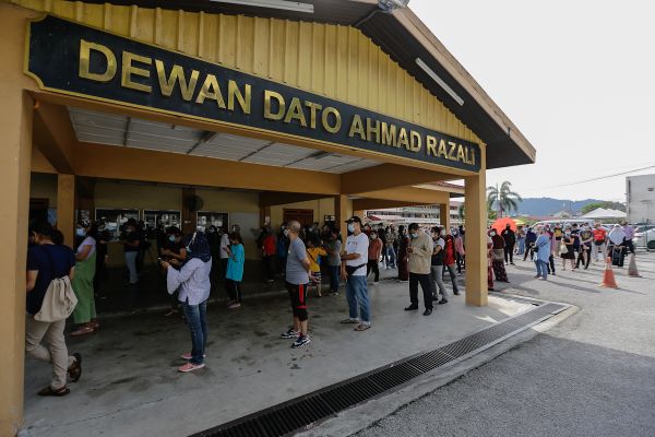 Orang ramai menunggu giliran bagi membuat ujian calitan Covid-19 ketika Saringan Komuniti Covid-19 secara bersasar di Dewan Dato' Ahmad Razali, Ampang Jaya pada 18 Mei 2021. Foto HAFIZ OTHMAN/SELANGORKINI