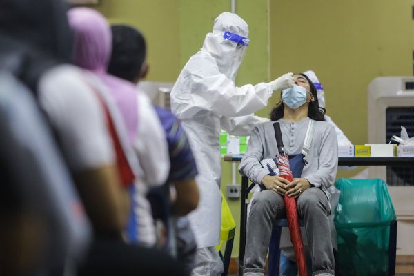 Petugas Kesihatan Selcare melakukan ujian calitan kepada peserta Saringan Komuniti Covid-19 secara bersasar di Dewan Seri Siantan, Batu Caves pada 20 Mei 2021. Foto FIKRI YUSOF/SELANGORKINI