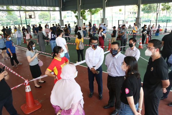 Dato’ Menteri Besar, Dato’ Seri Amirudin Shari meninjau proses saringan Covid-19 percuma di gelanggang bola keranjang Pusat Komuniti Bandar Utama, Damansara pada 25 Mei 2021. Foto REMY ARIFIN/SELANGORKINI