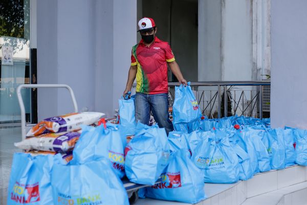 Kakitangan Jabatan Agama Islam Selangor (JAIS) sedang menyusun barangan bantuan untuk diagihkan kepada penerima ketika Program Selangor Prihatin Asatizah di Jabatan Agama Islam Selangor, Shah Alam pada 15 Jun 2021. Foto HAFIZ OTHMAN/SELANGORKINI