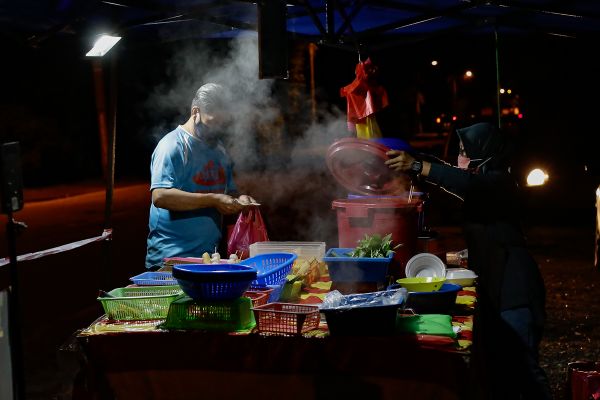 Peniaga Yong Tau Fu, Sarimah Muhamad, sedang menyediakan makanan pelanggan di Gerai Yong Tau Fu Kota Pandamar, Kampung Sungai Kandis, Shah Alam pada 29 Jun 2021. Kerajaan membenarkan operasi permis jual makanan atau restoran bermula 6 pagi hingga 10 malam ketika pelaksanaan fasa pertama kawalan pergerakan dibawah Pelan Pemulihan Negara (PPN). Foto HAFIZ OTHMAN/SELANGORKINI
