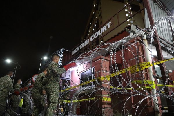 Anggota Angkatan Tentera Malaysia (ATM) membuka kawat duri susulan penamatan Perintah Kawalan Pergerakan Diperketatkan (PKPD) di Pangsapuri Mentari Court PJS8, Petaling Jaya pada 13 Julai 2021. Foto REMY ARIFIN/SELANGORKINI