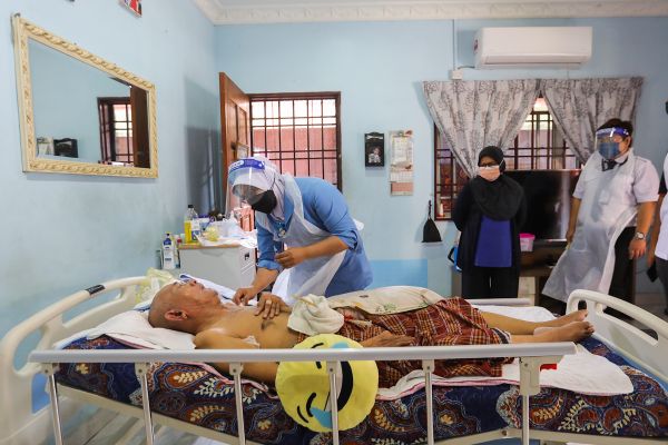 Petugas kesihatan memaklumkan kepada penerima sebelum memberi suntikan vaksin Covid-19 ketika Program Vaksinasi Mobile di Kampung Sijangkang, Kuala Langat pada 17 Julai 2021. Program ini mengutamakan mereka kurang upaya dan uzur, seperti tidak mampu berjalan atau terlantar di atas katil bagi memudahkan penerimaan vaksin. Foto HAFIZ OTHMAN/SELANGORKINI
