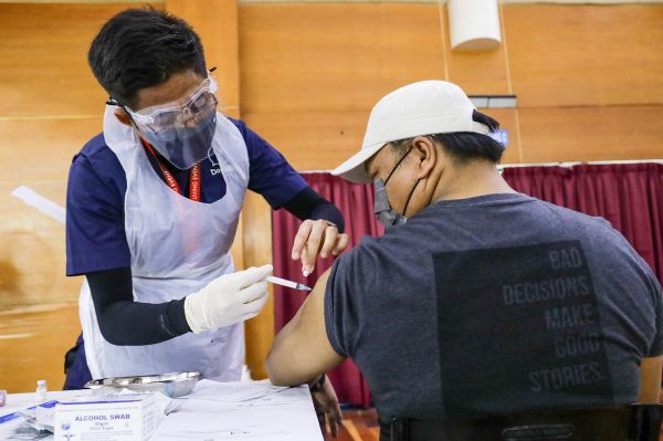 Petugas kesihatan memberi suntikan vaksin Covid-19 kepada peserta ketika program Selvax DUN Seri Setia di Dewan PKNS SS7, Kelana Jaya pada 23 Julai 2021. Foto FIKRI YUSOF/SELANGORKINI