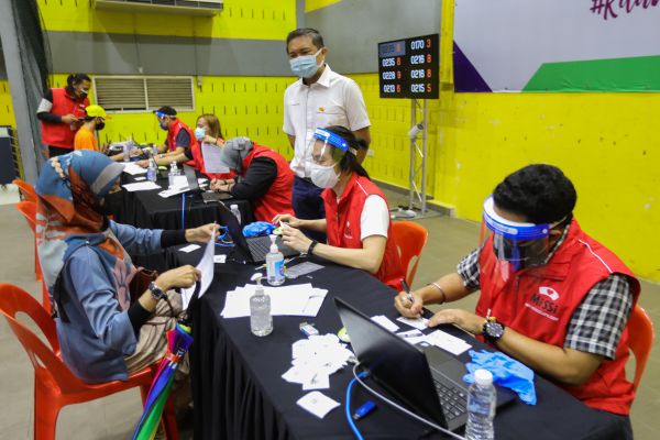 PUCHONG, 26 JULAI: Kewujudan Pusat Pemberian Vaksin (PPV) Puchong Indah memudahkan penduduk setempat mendapat suntikan pelalian.
