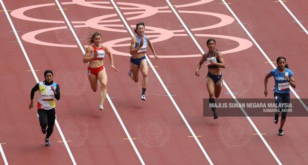 TOKYO, 30 JULAI: Pelari pecut wanita negara Azreen Nabila Alias, menampilkan larian bertenaga untuk mara ke pusingan pertama acara 100 meter (m), selepas menamatkan saingan di tempat kedua dalam pusingan kelayakan pada Sukan Olimpik Tokyo 2020, pagi ini.