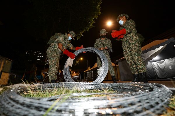 Anggota Angkatan Tentera Malaysia (ATM) membuka kawat duri susulan penamatan Perintah Kawalan Pergerakan Diperketatkan (PKPD) di Pangsapuri Merpati A, Pandan Indah pada 30 Julai 2021. Foto FIKRI YUSOF/SELANGORKINI