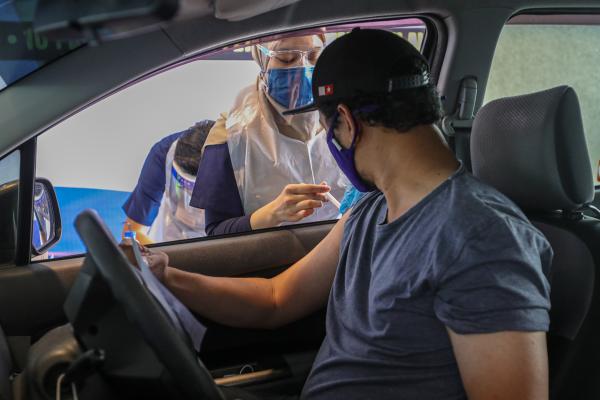 Petugas kesihatan memberi penerangan sebelum melakukan suntikan vaksin secara pandu lalu kepada kakitangan SIRIM ketika Program vaksinasi pandu lalu SIRIM bersama Selvax di Ibu Pejabat SIRIM, Shah Alam pada 31 Julai 2021. Foto HAFIZ OTHMAN/SELANGORKINI[/caption]