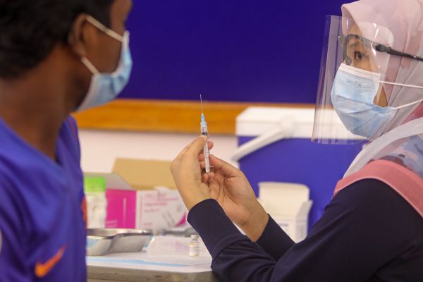 Petugas kesihatan, menunjukkan sukatan vaksin Covid - 19 jenis sinovac kepada penerima sebelum memberi suntikan ketika Program Vaksin Selangor (Selvax) Komuniti Dun Bukit Melawati di Dewan MDKS, Bandar Baru, Kuala Selangor pada 1 Ogos 2021. Foto HAFIZ OTHMAN/SELANGORKINI
