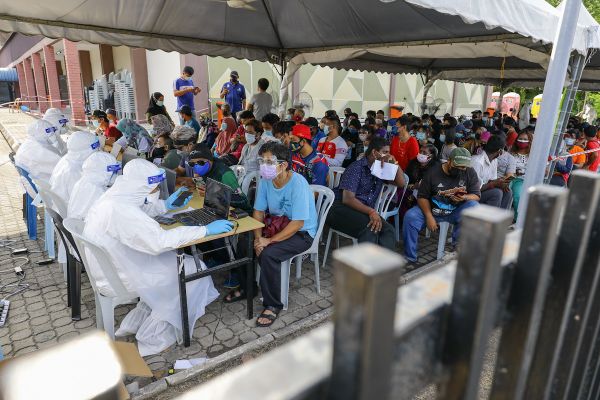 Petugas kesihatan merekod kehadiran pesakit Covid-19 ketika tinjauan SelangorKini di Pusat Penilaian Covid-19 (CAC) Dewan Serbaguna Pelabuhan Klang, Klang pada 2 Ogos 2021. Foto FIKRI YUSOF/SELANGORKINI