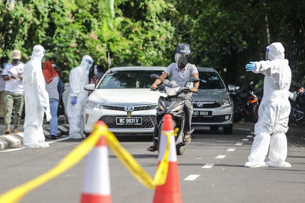 Anggota Penguat kuasa Majlis Perbandaran Klang (MPK) lengkap pemakaian set pakaian pelindung diri (PPE) membantu mengawal lalu lintas bagi permudahkan urusan orang ramai yang hadir di Pusat Penilaian COVID-19 (CAC), Dewan Serbaguna Pelabuhan Klang pada 2 Ogos 2021. Foto FIKRI YUSOF/SELANGORKINI