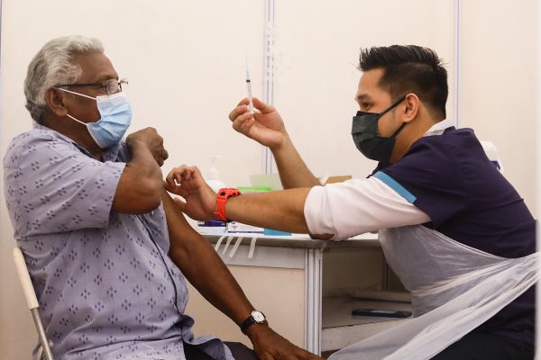 Petugas kesihatan menunjukkan picagari yang telah kosong selepas menyuntik vaksin Covid - 19 jenis sinovac kepada penerima ketika Program Vaksin Selangor (Selvax) Komuniti Dun Jeram di Dewan MDKS, Bandar Baru, Kuala Selangor pada 3 Ogos 2021. Foto FIKRI YUSOF/SELANGORKINI