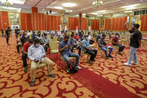 Sukarelawan membantu orang ramai yang hadir secara terus bagi memudahkan proses suntikan pelalian Covid - 19 ketika Program Vaksin Selangor (Selvax) Komuniti DUN Sentosa di Pusat Pemberian Vaksin (PPV) De Palma Hotel, Shah Alam pada 4 Ogos 2021. Foto HAFIZ OTHMAN/SELANGORKINI