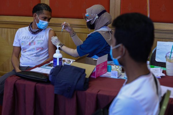 Petugas kesihatan menunjukan picagari yang telah kosong selepas memberi suntikan pelalian Covid - 19 kepada penerima dalam Program Vaksin Selangor (Selvax) Komuniti DUN Sentosa di Pusat Pemberian Vaksin (PPV) De Palma Hotel, Shah Alam pada 4 Ogos 2021. Foto HAFIZ OTHMAN/SELANGORKINI