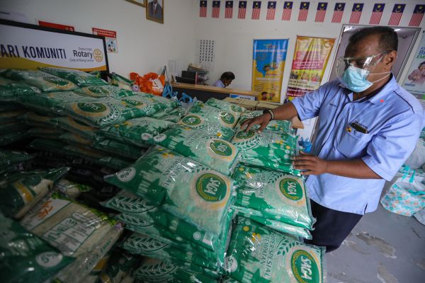 Skuad khas DUN Sentosa, Sakthi Siva, membuat persiapan mengasingkan beras yang akan di agihkan kepada penduduk ketika program pengedaran barangan asas anjuran DUN Sentosa di Taman Sri Mewah, Klang pada 14 Ogos 2021.Foto HAFIZ OTHMAN/SELANGORKINI