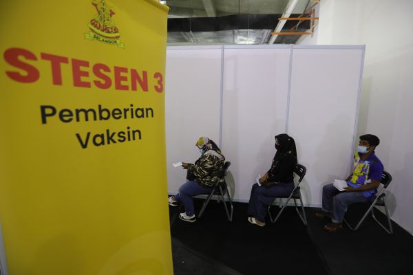 Orang ramai, yang telah mendaftar aplikasi Selangkah menunggu giliran untuk menerima vaksin Covid - 19 ketika Program Vaksin Selangor (Selvax) Komuniti DUN Sungai Ramal di Pusat Pemberian Vaksin (PPV) Evo Mall, Bandar Baru Bangi pada 18 Ogos 2021. Foto HAFIZ OTHMAN/SELANGORKINI