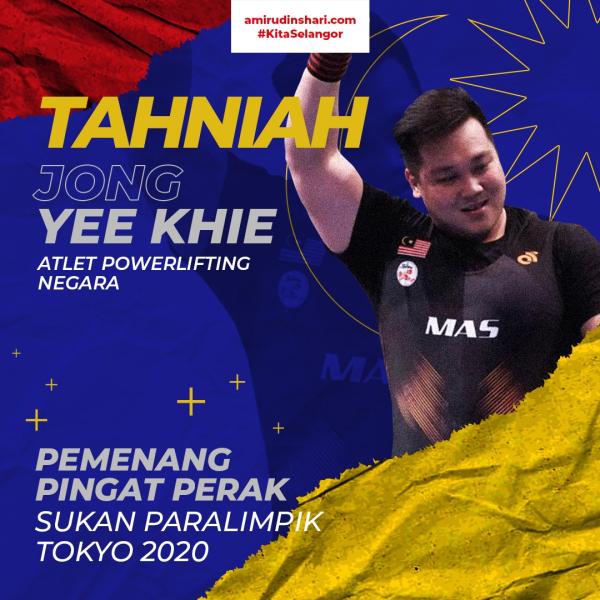 "Tahniah buat atlet kebangsaan, Jong Yee Khie yang telah berjaya meraih pingat dalam acara powerlifting lelaki 107kg di Sukan Paralimpik Tokyo 2020.