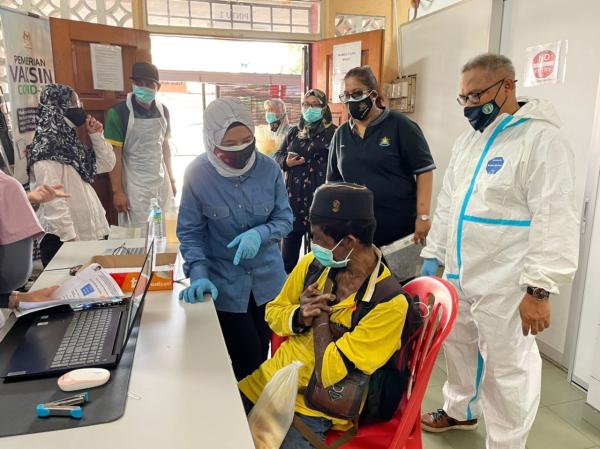 SHAH ALAM, 20 SEPT: Seramai 138 gelandangan sekitar Pelabuhan Klang menerima suntikan vaksin jenis CanSino melalui program Vaksinasi Komuniti Gelandangan semalam.