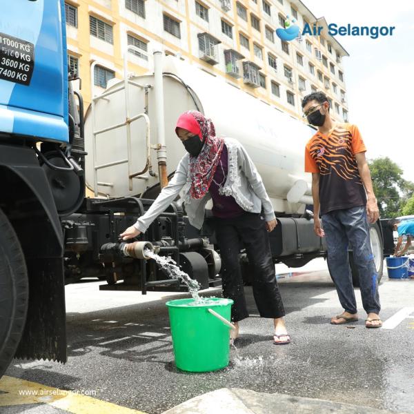"Air Selangor memohon kerjasama orang ramai untuk mematuhi penjarakan fizikal dan memakai pelitup muka semasa mendapatkan bekalan air daripada lori tangki," kata syarikat itu.
