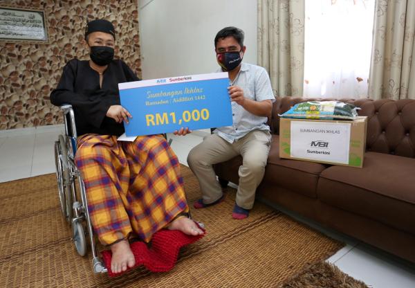 MBI dalam lawatan ke kediaman Gmie atau nama sebenarnya Hajimi Ibrahim, 52 di Sijangkang di sini, menghulurkan bantuan kewangan berjumlah RM1,000 dan bakul makanan.