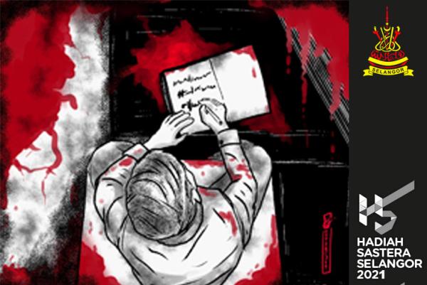 Kerusinya berlumuran darah. Papan putih yang tergantung di depan meja tulisnya terpercik darah dari luka di jarinya. Nota-nota kecil yang ditampal di papan putih tertanggal jatuh ke meja seperti daun-daun kering gugur di luar biliknya.