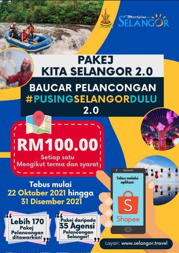 SHAH ALAM, 21 OKT: Baucar Pelancongan Selangor 2.0 bernilai RM100 setiap satu boleh ditebus mulai tengah malam ini menerusi aplikasi beli-belah terkenal Shopee.