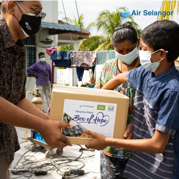 Air Selangor memaklumkan kotak bantuan yang dinamakan ‘Box of Hope’ itu mengandungi tepung, beras, susu dan minyak dihulurkan kepada mereka yang berada di sekitar Selangor, Kuala Lumpur dan Putrajaya.