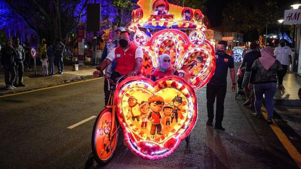 Selain sempat menaiki beca, Dato' Seri Amirudin Shari juga meninjau persembahan seni antaranya pemuzik jalanan dan 'Golden Man' di sekitar laluan tersebut.